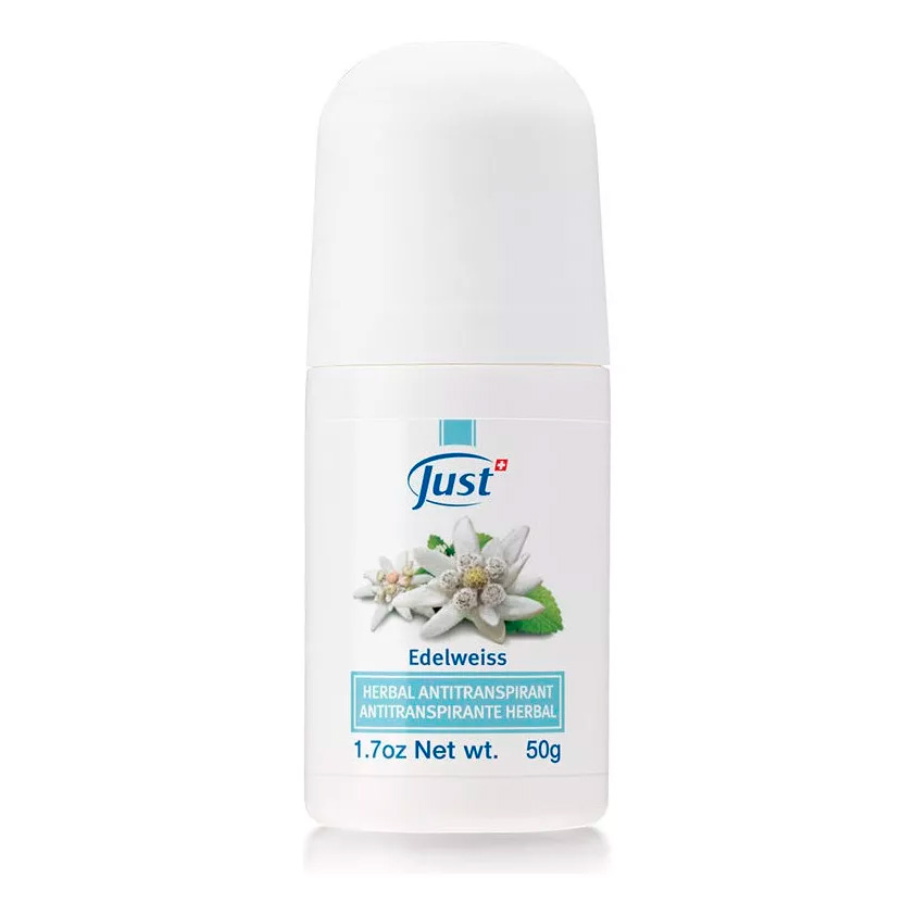 Desodorante roll-on de Edelweiss de la marca Just Swiss, ideal para el uso diario con una duración de 24 horas.
